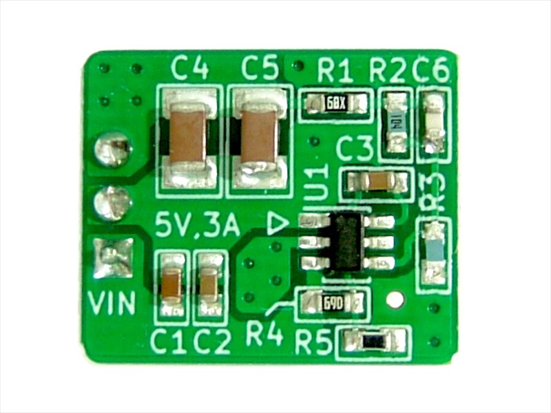 DC-DCコンバータモジュール(S1MOD9001)は、12V, 24V の電源バス電圧から 5V, 3A を出力するコンバータモジュールです。弊社製品では、Raspberry Pi 4 アダプタユニット(S1UNT0002)で Raspberry Pi 4 への5V電源供給用に使用しています。